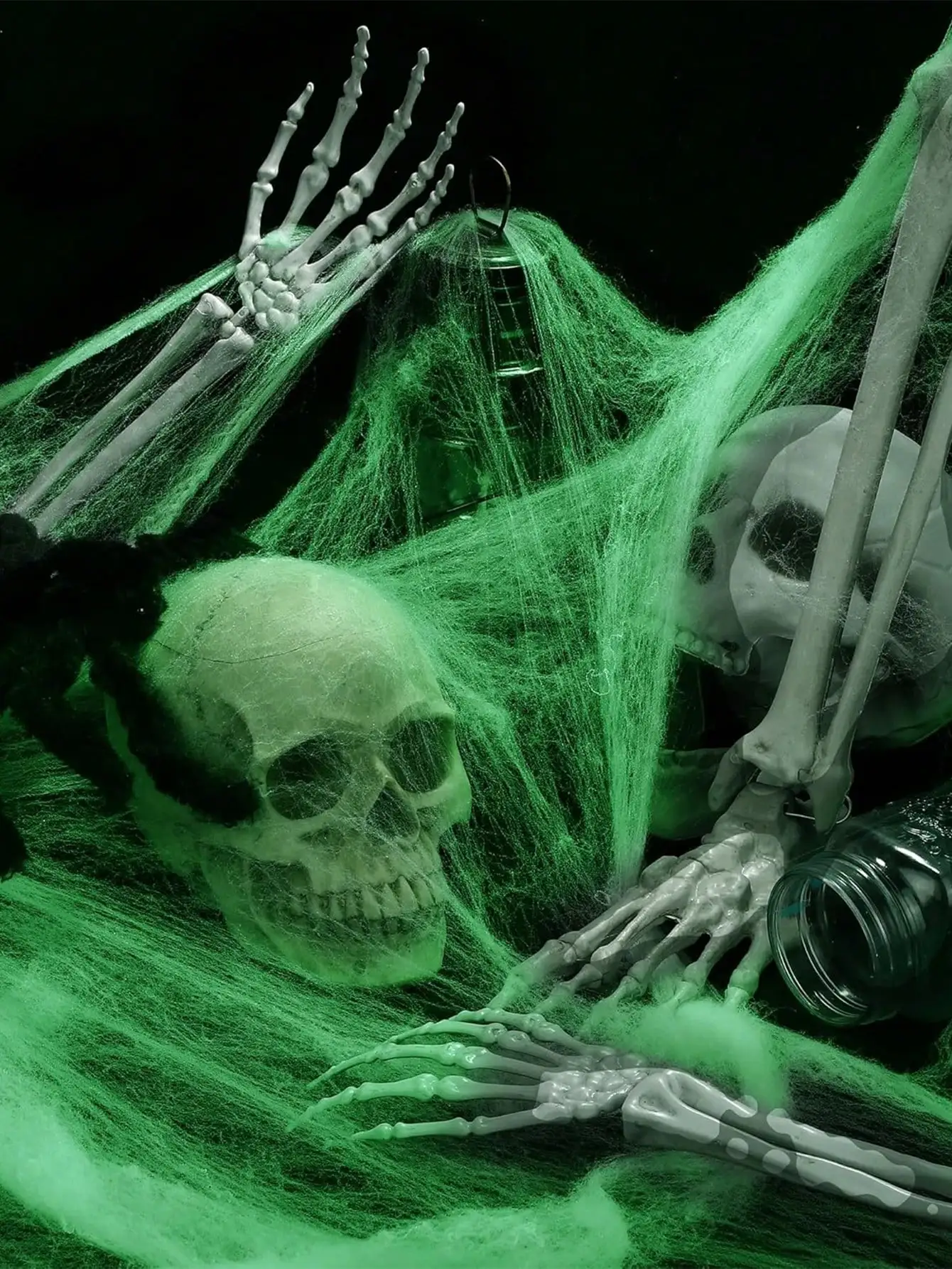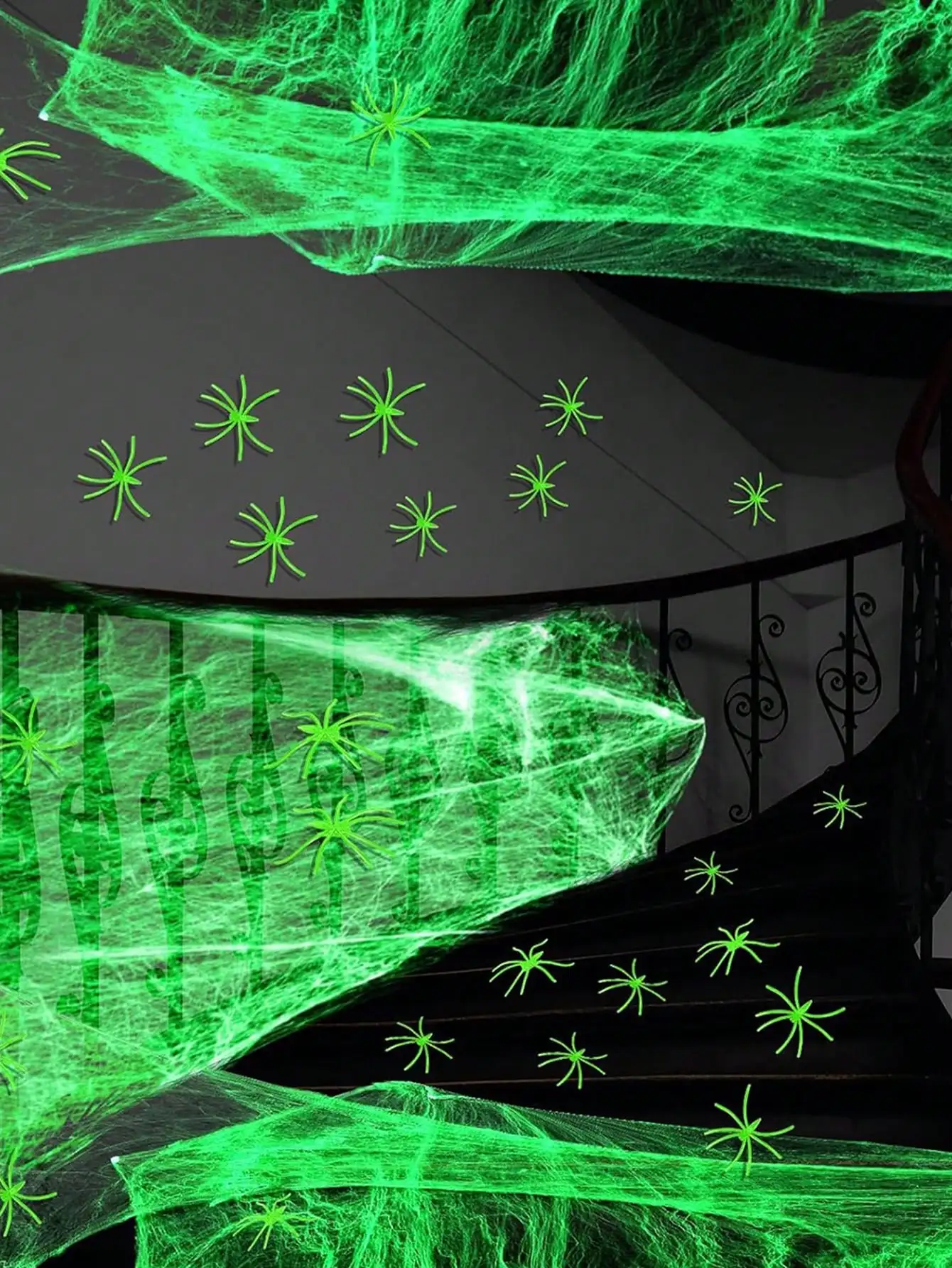 Transforme sua casa no cenário mais assustador do Halloween com o Conjunto de Teia de Aranha que Brilha no Escuro! 🕷️